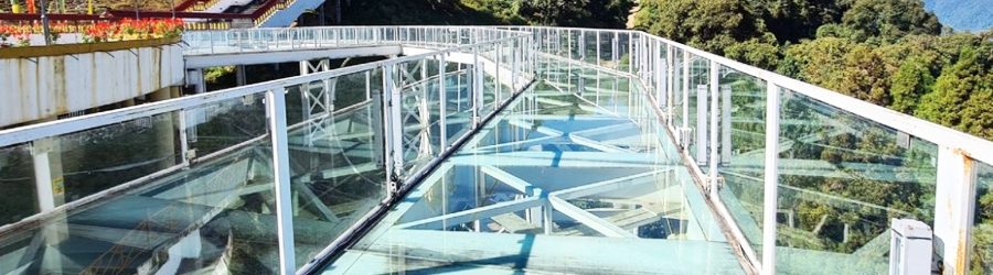 Around 2.5 kilometers from Pelling and located at a height of 7,200 feet above sea level, the skywalk is surrounded by the snow-capped Himalayas and overlooks the marvellous137 feet tall statue of Chenrezig and the stairs that lead up to it, with golden prayer wheels on both sides. Visitors can also get a panoramic view of the Teesta and Rangit rivers.